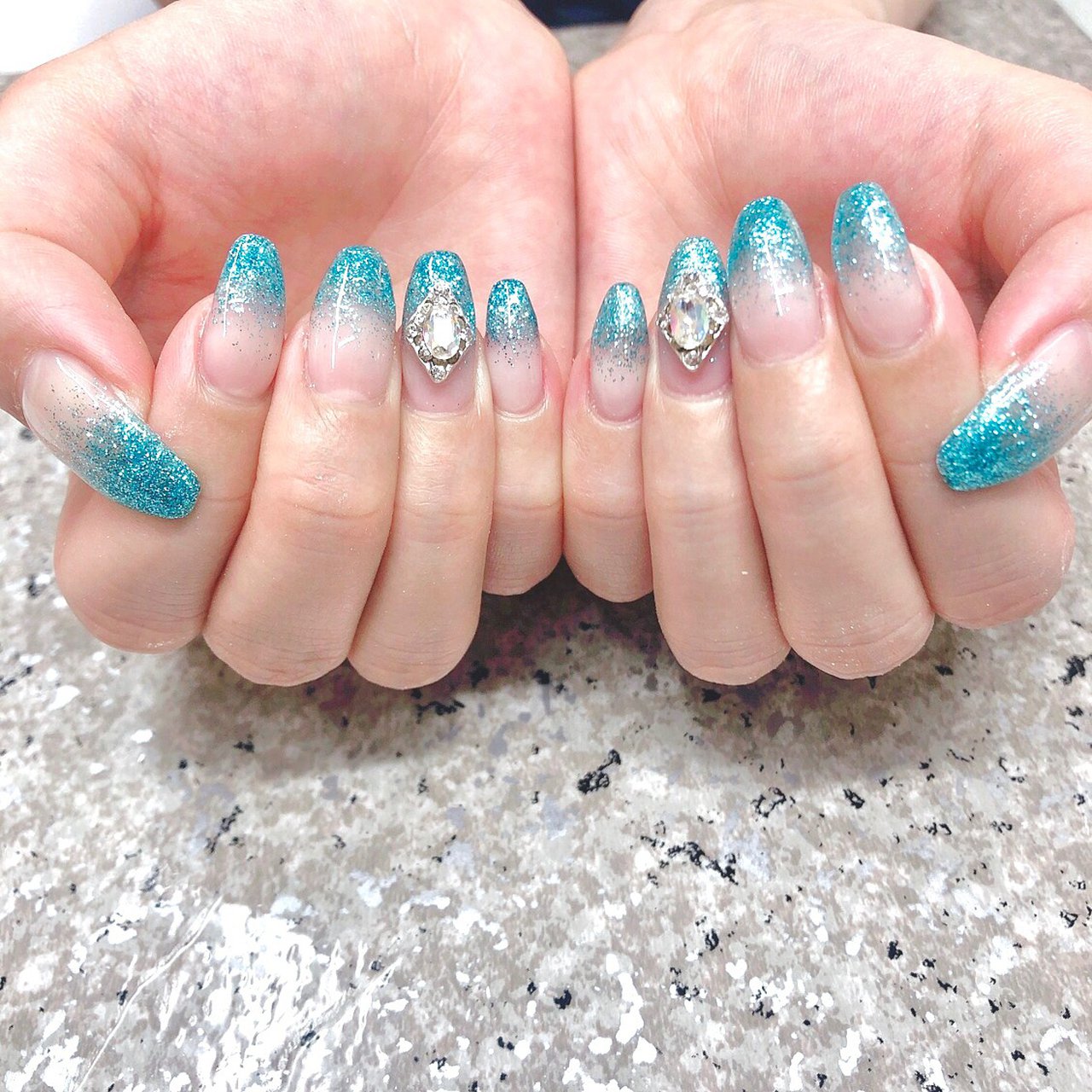 ネイル 水色 ラメ
